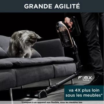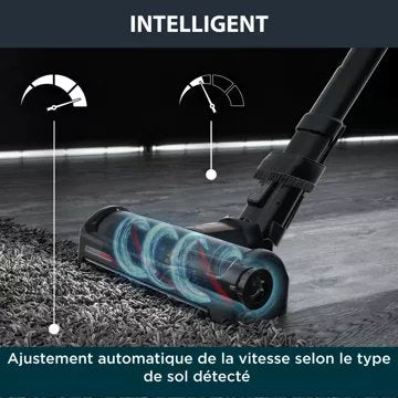 Le nouveau mode automatique de l'aspirateur balai X Force Flex 15.60 permet de détecter le type de sol et d'adapter sa puissance en fonction, pour des résultats optimisés à chaque passage. Grâce à sa technologie FLEX, l'aspirateur balai sans fil de Rowenta vous permet d'aller jusqu'à 4 fois plus loinsous les meubles bas, pour un nettoyage complet sans vous pencher. En quelques secondes, aspirez sous votre canapé ou votre lit en enclenchant la position FLEX. La tête d'aspiration rotative à 180 est équipée d'un éclairage avec leds et vous aidera à traquer la poussière dans les recoins les sombres ! Et pour toutes les autres surfaces, canapés, meubles, sièges de voiture ...dégainez facilement l'aspirateur à main détachable ultra-maniable.