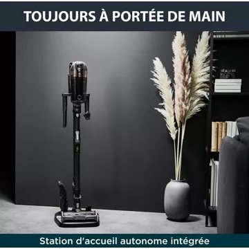 L'aspirateur balai est doté d'une gâchette Boost pour les petits accidents du quotidien et la poussière incrustée. La station d'accueil autonome exclusive est ultra pratique pas besoin de trous dans le murs, l'aspirateur est toujours à portée de main et chargé, et si vous souhaitez aspirer vos plafonds, il suffit d'utiliser le tube de la station d'accueil comme rallonge.