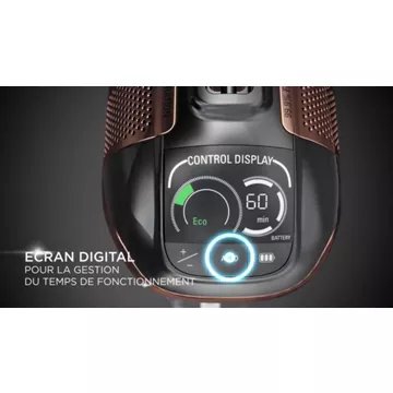 L'écran de contrôle digital permet de régler la puissance de l'aspirateur balai de Rowenta selon 5 niveaux de puissance en fonction de vos besoins. Très pratique, il affiche en direct l'autonomie restante de votre aspirateur à la minute près, pour que vous ne soyez jamais pris de court.