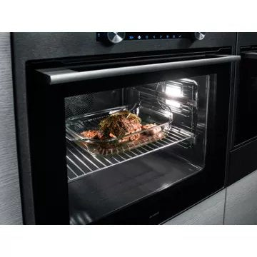 La sonde culinaire et les 87 programmes prédéfinis assurent des résultats parfaits, tandis que les rails télescopiques et la fermeture amortie offrent un confort d'utilisation inégalé. L'écran couleur TFT de 6 pouces avec navigation tactile rend l'expérience utilisateur intuitive et agréable.