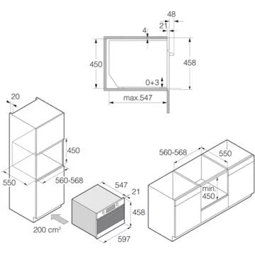 - Type d'encastrement : Four compact (hauteur 45 cm)