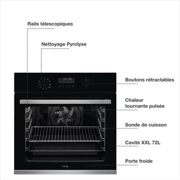 No reviewsLes points clés Chaleur tournante pulsée - Nettoyage pyrolyse Sonde cuisson, Rails téléscopiques Porte froide - Ouverture standard Encastrement standard (60cm) Le + : cuisson assistée avec 45 recettes préprogrammées, plat AirFry pour frire sans ajout...Prix normal €494,10Prix normal €494,10 -