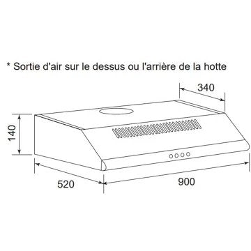 - Largeur : 90 cm, pour une zone de cuisson allant jusqu'à 90 cm de largueur.