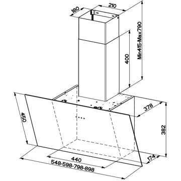 - Type de hotte : : décorative murale inclinée - évacuation et recyclage