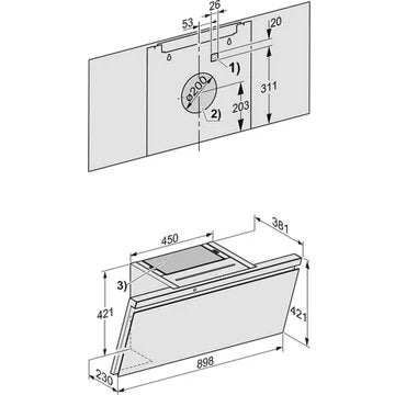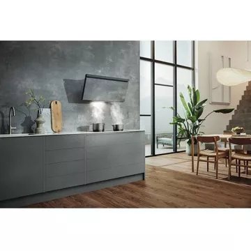 - Type de hotte : décorative murale inclinée, combine style et fonctionnalité. Sa conception permet de mieux gérer l'espace au-dessus de la zone de cuisson. Elle évite de devenir un obstacle dans l'espace de cuisson et n'obstrue pas la vue, rendant plus facile la préparation des plats.