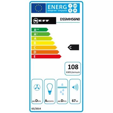 La hotte NEFF D55MH56N0 est conçue pour offrir un confort maximal grâce à ses touches de commande électroniques intuitives et son éclairage LED économique, qui procure une luminosité de 244 lux avec une température de couleur de 4000 K. Les deux lampes LED de 1 W chacune allient performance et basse consommation énergétique, classées A en efficacité d'éclairage. De plus, le niveau sonore reste contenu entre 53 et 67 dB(A), permettant de cuisiner dans une ambiance sereine. Le filtre à graisse métallique lavable au lave-vaisselle simplifie l'entretien, et les accessoires en option tels que les filtres à charbon actif et les kits de recyclage CleanAir offrent une personnalisation selon les besoins spécifiques de chaque utilisateur.