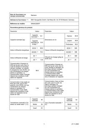Lave-linge séchant Siemens WN54G200FF Les points forts Capacité de lavage 10 kg / séchage 6 kg - Classe énergétique E Essorage variable jusqu'à 1400 tours/min - 69 dB Fin différée / Affichage temps restant Technologie AutoDry...Prix normal €959,99Prix normal €959,99 -