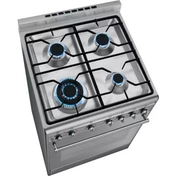 La sécurité est une priorité avec la SMEG SX61GM, équipée de thermocouples qui coupent automatiquement l'arrivée de gaz en cas d'extinction accidentelle de la flamme. Le confort d'utilisation est également au rendez-vous grâce aux grilles émaillées noir mat, robustes et élégantes, et au système d'allumage intégré aux manettes. Le four, d'un volume net de 70 litres, est doté d'une porte plein verre avec poignée en inox brossé, offrant une visibilité optimale et un nettoyage facilité. La technologie de refroidissement tangentiel assure que la porte reste à une température modérée, protégeant ainsi l'utilisateur et les meubles environnants. Enfin, la cuisinière est pourvue d'un éclairage halogène de 40 W, permettant de surveiller la cuisson sans ouvrir la porte, et d'options pratiques telles que le minuteur et la programmation de fin de cuisson.