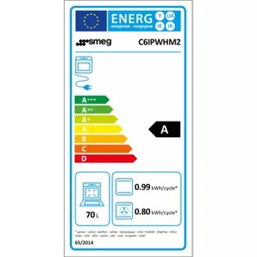 • Valeurs du label énergie : Label énergie A, Consommation en convection naturelle 0,99 kW, Consommation en chaleur tournante 0,8 kW