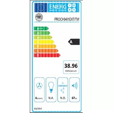 - Valeurs du label énergie : Label énergie A, Classe d'efficacité d'évacuation de la vapeur et fumées A