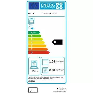 - Valeurs du label énergie : Label énergie A, Consommation en convection naturelle 0,88 kW, Consommation en chaleur tournante 0,83 kW