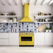 CENTRE DE CUISSON PORTOFINO, 90 CM, 5 FOYERS INDUCTION, PYROLYSE, DOUBLE CHALEUR TOURNANTE, TRIPLE TURBINE, JAUNE