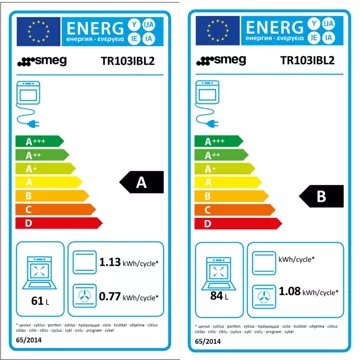 - Valeurs du label énergie : Label énergie A, Consommation en convection naturelle 1,08 kW, Consommation en chaleur tournante 0,77 kW