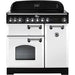 Table Vitrocéramique 90cm 5 foyers dont 2 composés de deux éléments permettant 2 tailles de récipients / 2 Fours électriques à chaleur tournante : 1 Multifonction 8 modes (dont Rapid) à Gauche avec Handyrack et 1 Four (67L) avec indicateur de chaleur sur la porte à droite / 1 four gril séparé avec plateau coulissant Deluxe et grille 4 positions / Minuteur / Mini crédence Classic détachable