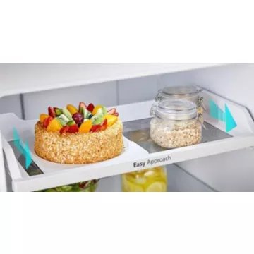 Conçu pour les familles de 2 ou 3 personnes, le réfrigérateur 2 portes ventilé HISENSE RT600N4WCE affiche une capacité nette de 467 L. Pratique dans tous ses détails, il vous garantira un rangement et un service facilités par le système Easy Approach. La clayette coulissante vous permet ainsi d'accéder aux aliments stockés à l'arrière en toute simplicité.