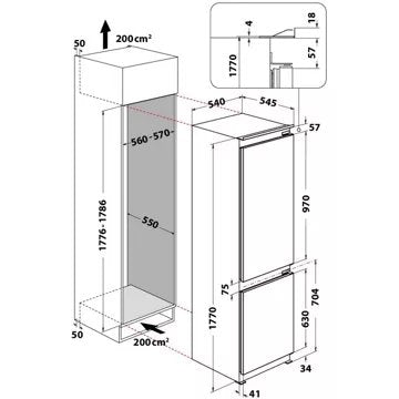 - Dimensions d'encastrement l x h x p : 57 x 179 x 55 cm