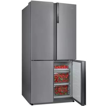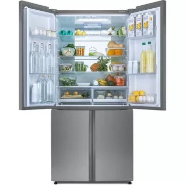 Le combiné HTF-610DM7 de Haier offre une très grande capacité de stockage, avec un total de 610 litres, grâce à une dimension de 90 cm de largeur. L'important volume de ce réfrigérateur et congélateur reste aisé à charger, avec un système multi-portes qui facilite l'accès aux différents compartiments. À l'intérieur de la partie réfrigérée, 3 clayettes en verre, 6 balconnets contre porte et une partie bac à légumes assurent un rangement facile de toutes vos denrées.