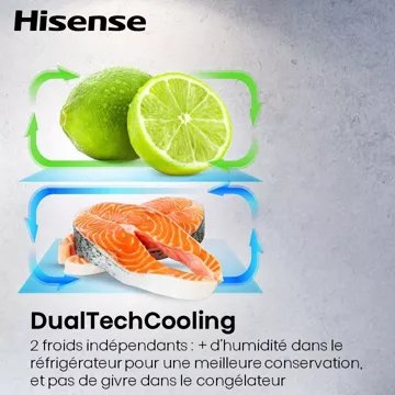 - Dual Tech Cooling : deux systèmes de froid indépendants pour garder plus d'humidité dans le réfrigérateur et éviter les mélanges d'odeurs.