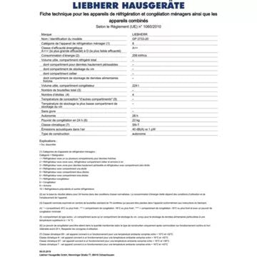 Congélateur armoire LIEBHERR GP2733-21 Reconditionné
