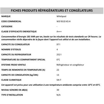 Réfrigérateur combiné WHIRLPOOL W9931DKSH Reconditionné