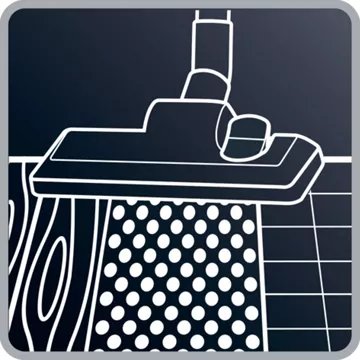 - Brosse principale : Brosse 2 en1 (sols durs et moquettes)